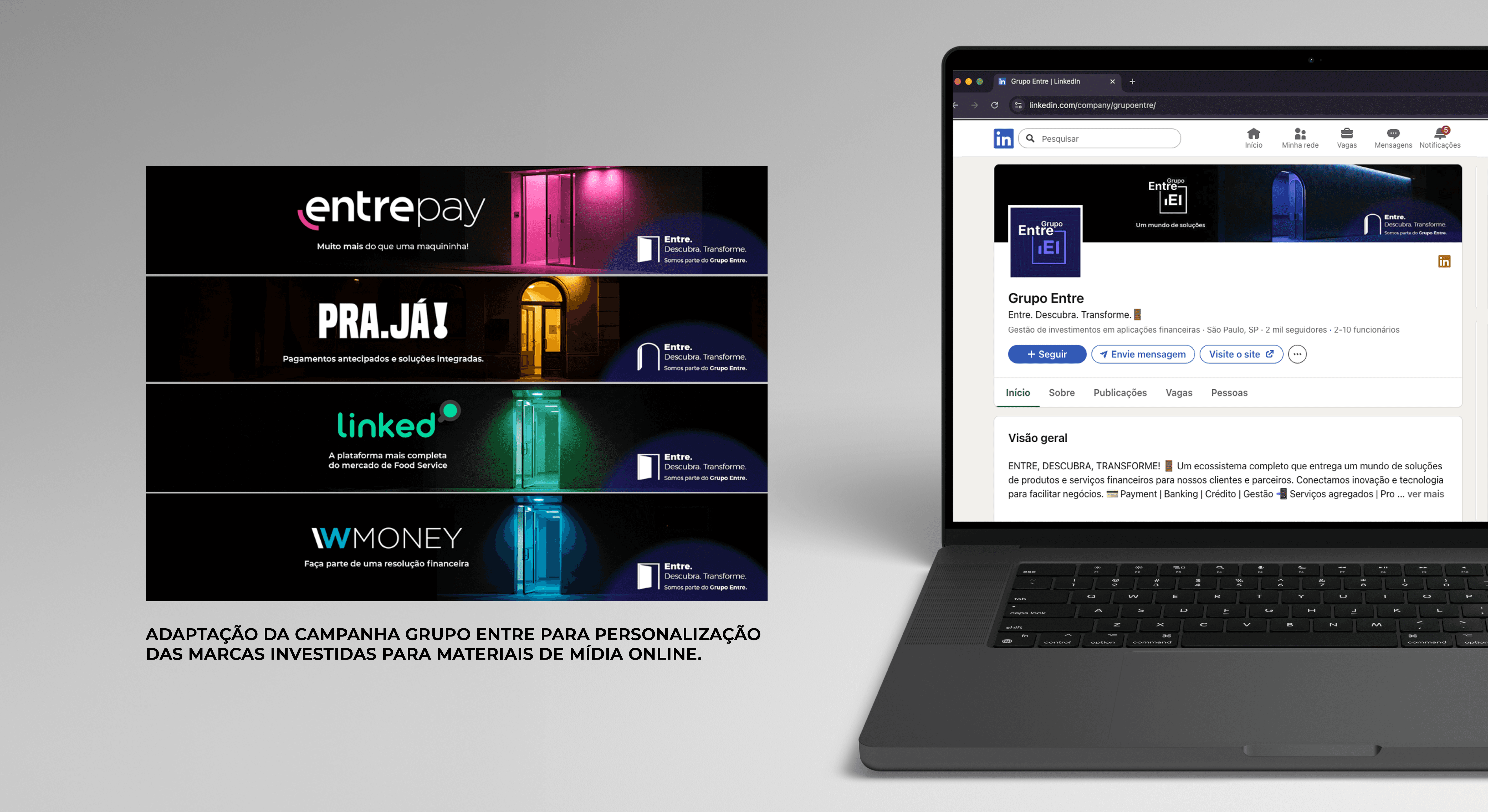 The Entre Group is an ecosystem of companies focused on payment methods, digital services, and financial solutions. Our challenge was to position the group within the corporate world and, subsequently, with the small business owners who use its solutions.